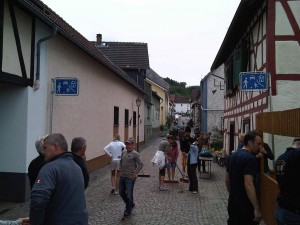 Am 23.06.2012 startete das legendäre Backesfest in eine neue Ära. Mit geballter Kraft, stemmte das Dorf wieder ein Fest im gemeinschaftlichen Zusammenhalt und in Zusammenarbeit mit dem Löschverband. Ob jung oder alt, alle waren zur Stelle um die Strasse für das Fest des Jahres herzurichten. Bereits am Donnerstag wurde begonnen und das „Drosselgässche“ in Mike´s Hof herzurichten. Am Freitag ging es dann an die groben Sachen und es ging schon früh los. Fußball stand am Abend an, weshalb man sich bereits um 13:00 Uhr traf um die Biergondel, Grillbude, Zelte, Tische und Bänke aufzubauen.