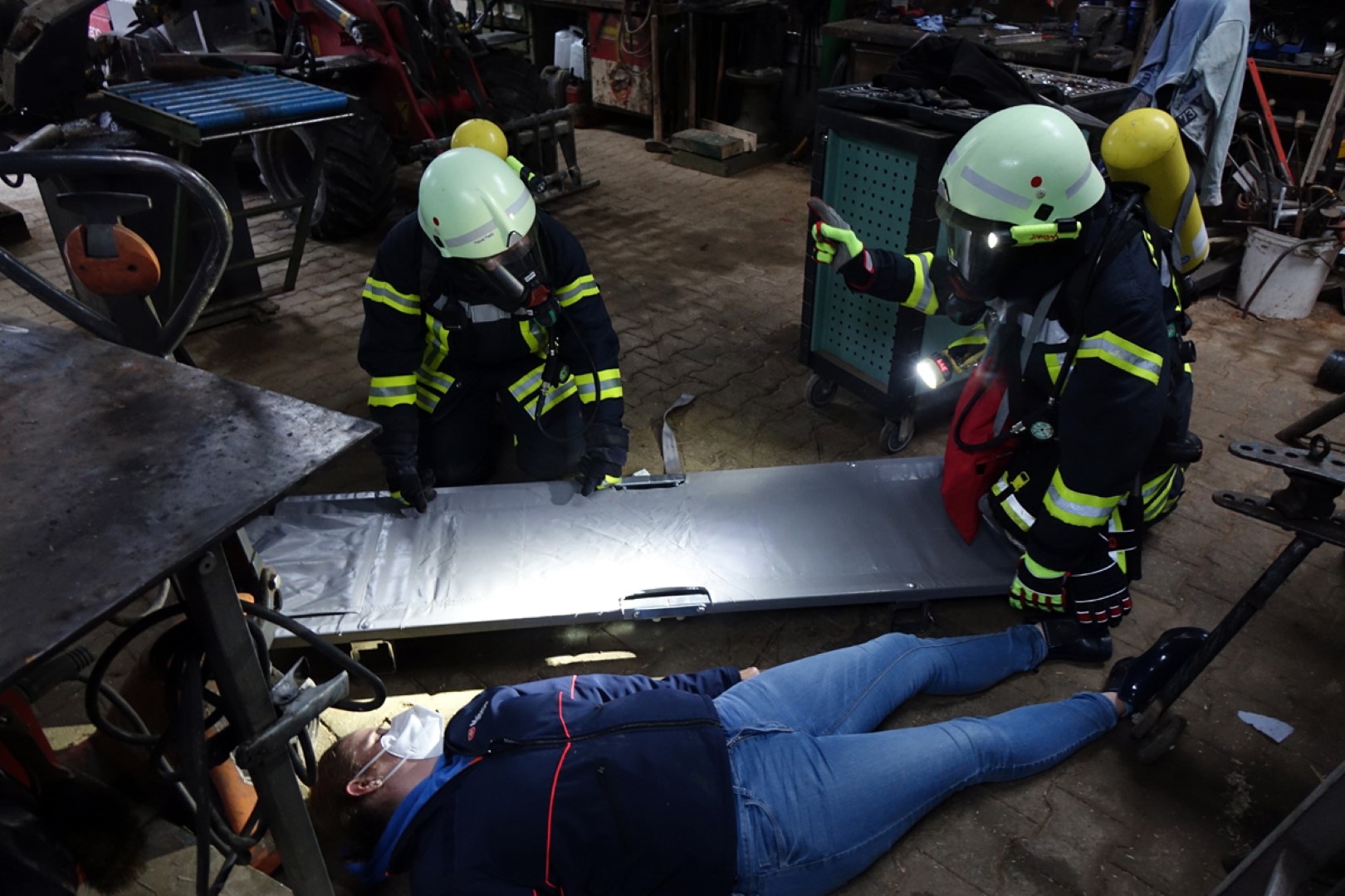 14.07.2021 Übung / F2 / Brennt Dachstuhl Landw. Halle mit Verletzten